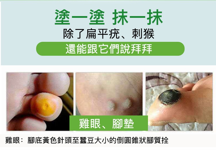 日本進口祛疣軟膏主要功效淨除雞眼膏、瘊子疣、必治扁平疣體、去除跖疣肉刺手足部的去疣膏。扁平疣、絲狀疣、尋常疣,一種病毒傳染性皮膚病,多發於脖子、臉頰、手背等暴露部位,日本去疣神膏推薦這款疣藥膏可用於面部及手的疣軟膏的治疣藥膏及疣藥水精選。